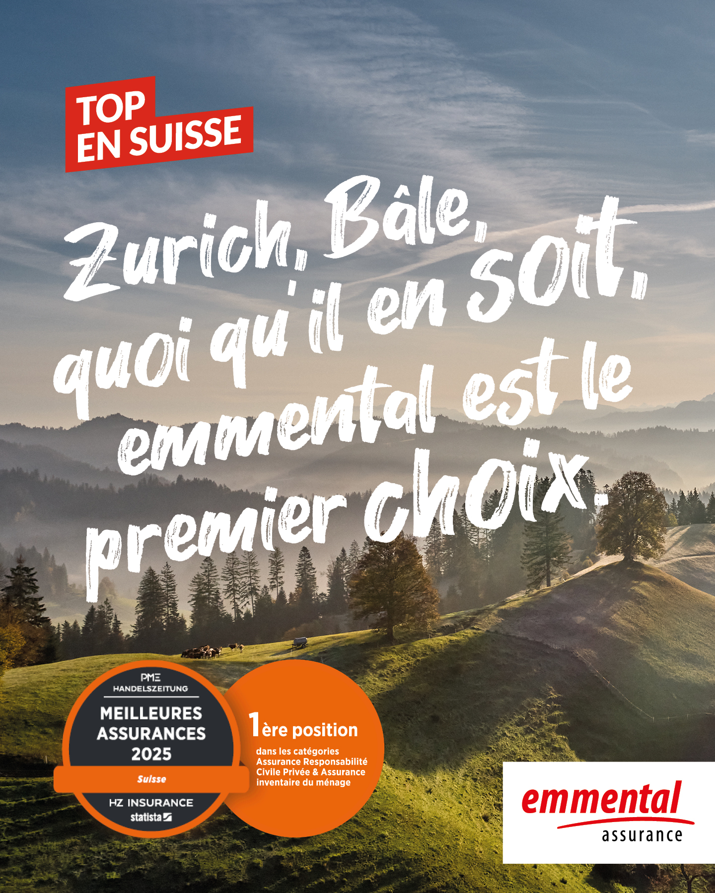 Quelle assurance suisse dispose des clientes et clients les plus satisfaits et qui offre le meilleur service ? Chaque année, la « Handelszeitung », « HZ Insurance » et « PME » comparent les compagnies d'assurance suisses dans le cadre d'une enquête de grande envergure. 2800 Suisses ont été interrogés en collaboration avec l'institut d'études de marché Statista. Parmi les 135 compagnies d'assurance analysées, emmental assurance se hisse deux fois en tête ; elle obtient la première place aussi bien dans la catégorie assurance ménage que dans celle de l'assurance responsabilité civile privée. L'année dernière déjà, l'assurance ménage occupait la première place du classement.